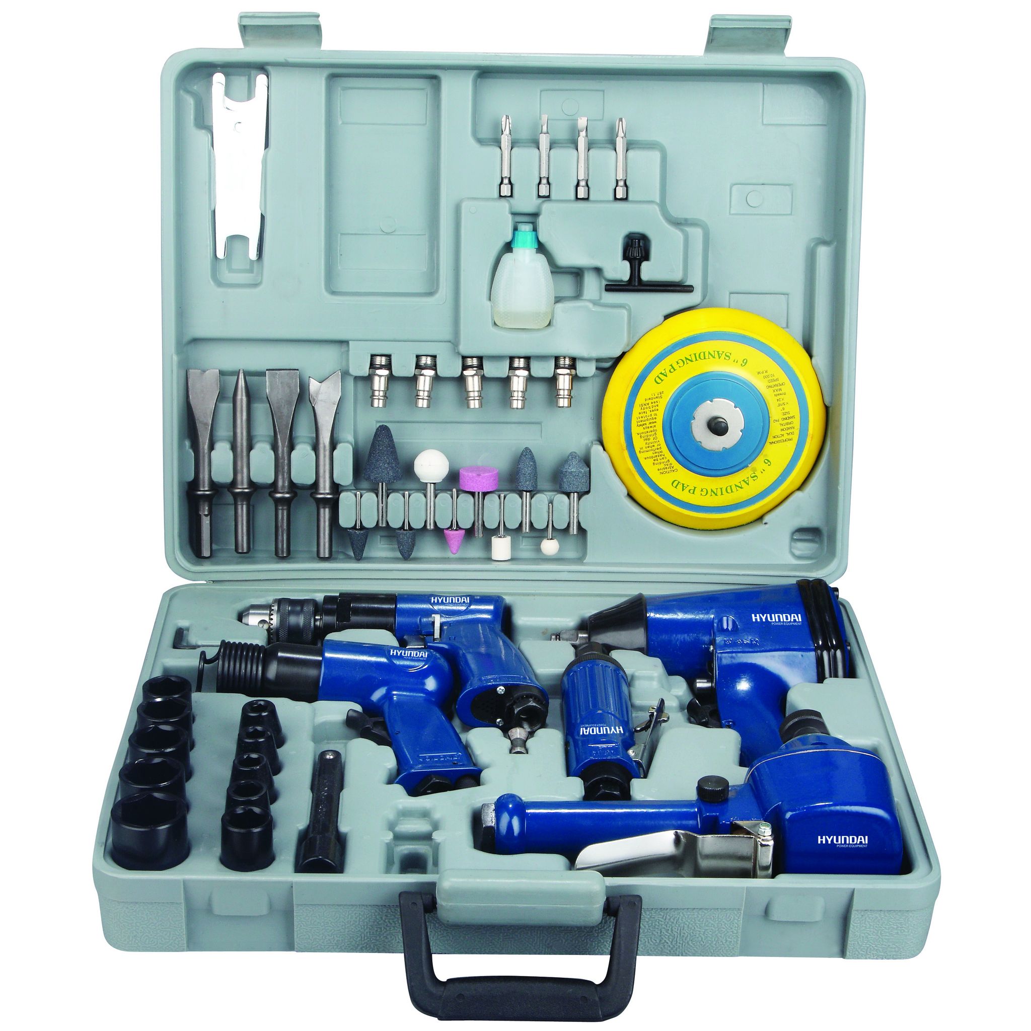 Ce kit outils à air comprimé comprends 48 pièces, une meuleuse droite, une clé à chocs, une perceuse, un burineur ainsi que différents accessoires. Il vous sera utile pour réaliser tout type de travaux au quotidien.