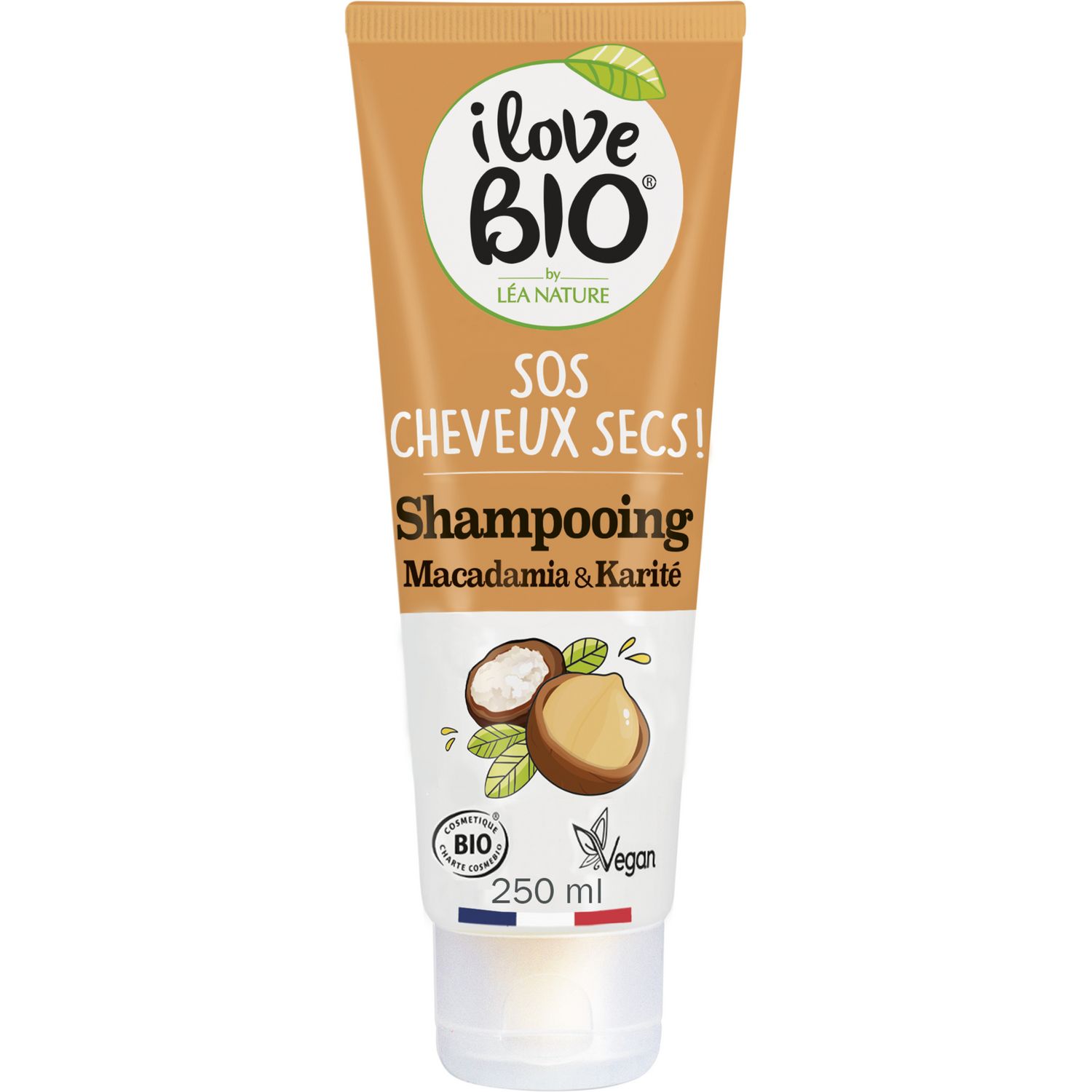 Shampooing I Love Bio Macadamia & beurre de karité shampooing bio cheveux secs parfum naturel naturel vegan Made in France 0% sulfates 0% silicone 0% huile de palme Macadamia beurre de Karité shampooing I Love Bio douceur