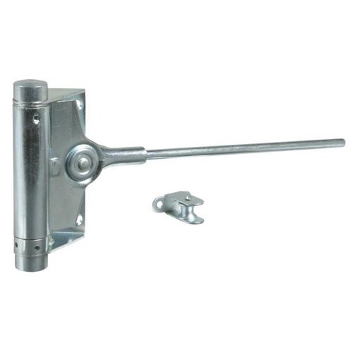 Fermeportes à ressort avec bras central pliable.Numéro 1 A=075 B=235 pour porte maxi 25 KNuméro 2 A=100 B=235 pour porte maxi 40 KNuméro 3 A=120 B=235 pour porte maxi 60 KNuméro 4 A=150 B=300 pour porte maxi 80 K