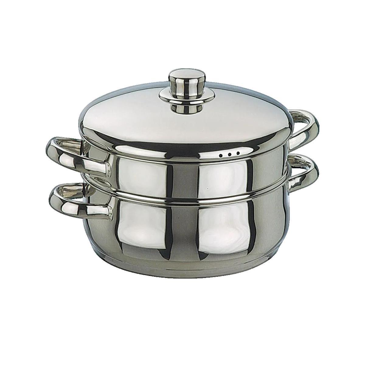 Cette casserole à vapeur en acier inoxydable de haute qualité garantit une cuisson saine en conservant les nutriments. Avec un élégant fini argenté, elle s'intègre parfaitement dans votre cuisine. Dotée d'un couvercle de qualité et d'un tamis de vidange, elle est idéale pour des portions généreuses.