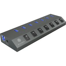 Découvrez le hub USB ICY BOX IB-HUB1701-C3, un accessoire performant doté de 7 ports USB 3.0 Type-A équipés chacun d'un interrupteur on/off pour économiser l'énergie. Il supporte la norme de charge BC 1.2, permettant de charger vos appareils mobiles même sans connexion à un ordinateur. Transfert de données rapide jusqu'à 5000 Mbit/s. Son design élégant en aluminium avec finition anthracite s'adapte parfaitement à tout environnement de bureau ou domestique. Compatible avec Windows et Mac, input power de 100-240 V, 1.5 A.