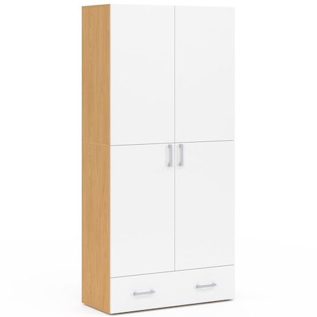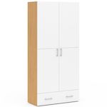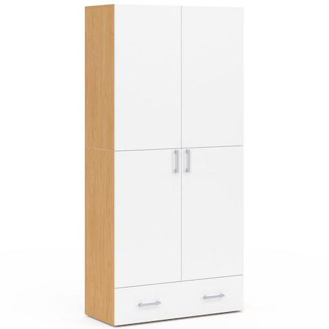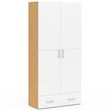 Armoire 2 portes JULIANA blanc et bois étagères 80 cm avec 1 tiroir