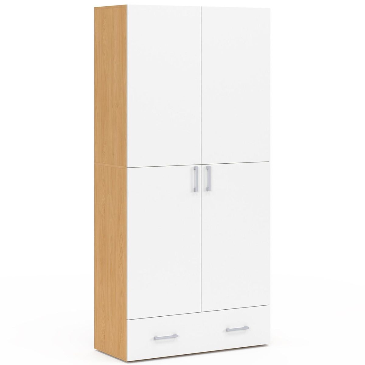 Optez pour une organisation optimale avec l'armoire 2 portes JULIANA. Ce meuble polyvalent combine intelligemment rangements fermés et espaces modulables pour répondre à toutes vos exigences du quotidien.Derrière ses deux portes, JULIANA dispose de 3 étagères, dont 2 réglables sur 3 positions, idéales pour adapter l'espace selon la taille de vos vêtements, linge de maison ou accessoires.Son tiroir inférieur spacieux, d'une hauteur de 19 cm, permet de ranger discrètement vos effets personnels tout en les gardant à portée de main.Avec son design sobre et contemporain, mêlant le blanc lumineux au bois hêtre, cette armoire s'intègre facilement dans tous les styles d'intérieur, du plus moderne au plus altique.Fonctionnelle et esthétique, elle vous aide à garder un espace ordonné sans compromis sur le style.Ne laissez plus le désordre s'installer et adoptez l'armoire JULIANA pour un rangement efficace et élégant !Dimensions de l'armoire 2 portes JULIANA blanc et bois avec 1 tiroirDimensions globales : Longueur 79 cm x largeur 35 cm x Hauteur 165 cm3 étagères dont 2 modulables sur 3 positionsHauteur du tiroir : H. 19 cmProfondeur du tiroir : P. 29 cmColoris : blanc et boisMatériaux : panneaux de particules, MDF et métalÀ monter soi-mêmePour encore plus de rangement, retrouvez toute notre sélection de dressings ainsi que nos commodes !