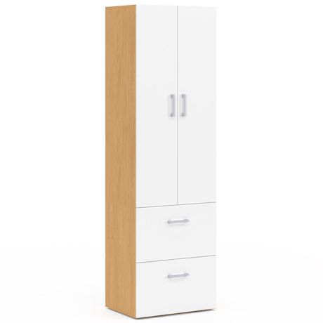 Armoire 2 portes JULIANA blanc et bois penderie 50 cm avec 2 tiroirs
