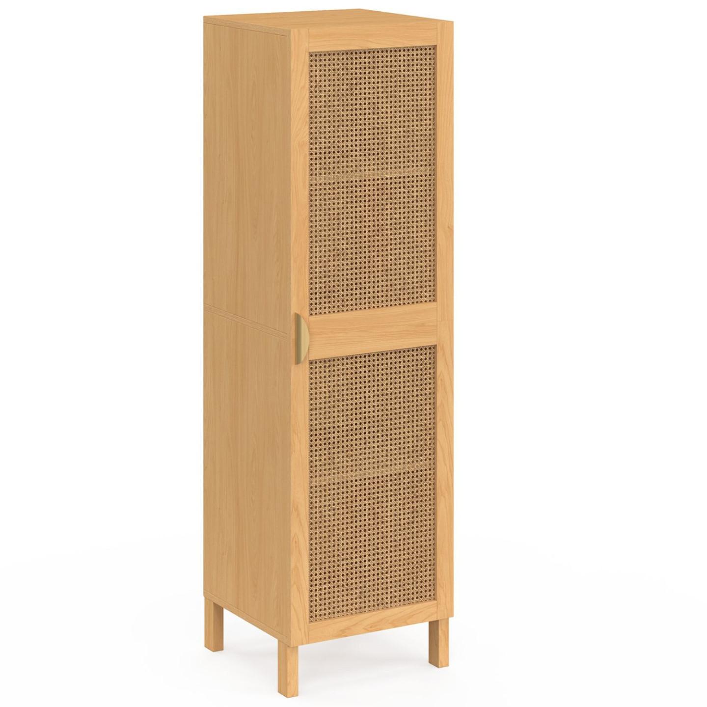 Armoire de rangement EDHEN 1 porte 3 étagères bois et cannage