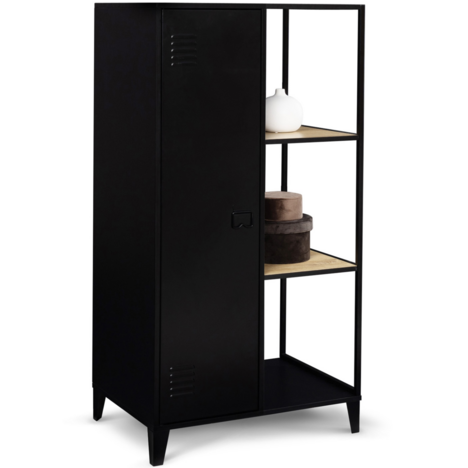 Armoire-étagère penderie ESTER 1 porte métal noir et bois design industriel