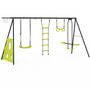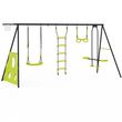 Balançoire 4 agrès portique avec balançoire face à face trapèze échelle panier de basket et buts de foot