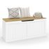 Avec ses dimensions généreuses, ce coffre offre une véritable solution de rangement pour vos couvertures, jouets, coussins, chaussures ou tout autre objet du quotidien. Il permet de désencombrer votre espace tout en conservant vos affaires à portée de main.Le design à lattes verticales apporte une touche d'originalité tout en conservant un look sobre et intemporel. L'aspect bicolore blanc et bois crée un contraste doux qui s'harmonise facilement avec différents styles d'intérieur, du scandinave au bord de mer.Son plateau coloris bois ajoute une touche chaleureuse tout en pouvant servir de surface d'appoint : vous pourrez y déposer une plante, une lampe ou quelques livres pour le rendre encore plus décoratif.Sa structure robuste en panneaux de particules de bois garantit stabilité et durabilité.Ce meuble est aussi bien pensé pour optimiser les petits espaces que pour compléter une pièce plus vaste en toute discrétion !Dimensions du coffre de rangement LEONDimensions globales : Longueur 100 cm x largeur 38 cm x Hauteur 43 cm Matériaux : Panneau de particules 1,2 cm Coloris : Blanc et bois À monter soi-même