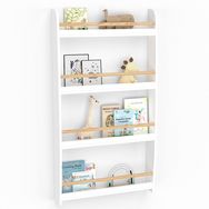 Bibliothèque murale enfant PAULETTE 4 étagères blanc et bois