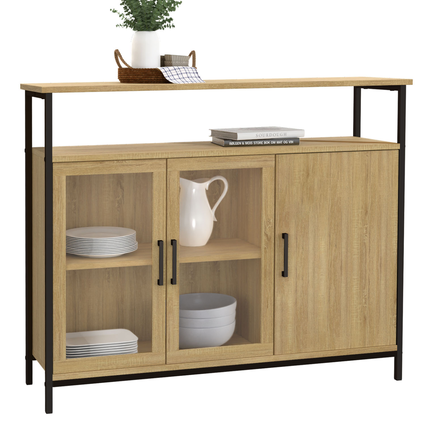 Buffet 100 cm DETROIT 2 portes vitrine avec placards design industriel