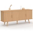Buffet 140 cm JULIETTE 4 portes lattes tasseau bois coloris chêne