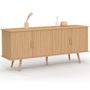 Ajoutez une touche de sophistication à votre intérieur avec le buffet JULIETTE ! L'alliance entre le bois clair et l'effet lattes sur les portes apporte un esprit chaleureux à votre salon ou à votre salle à manger qui s'accordera à merveille avec votre décoration intérieure. Ce buffet en bois clair