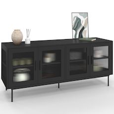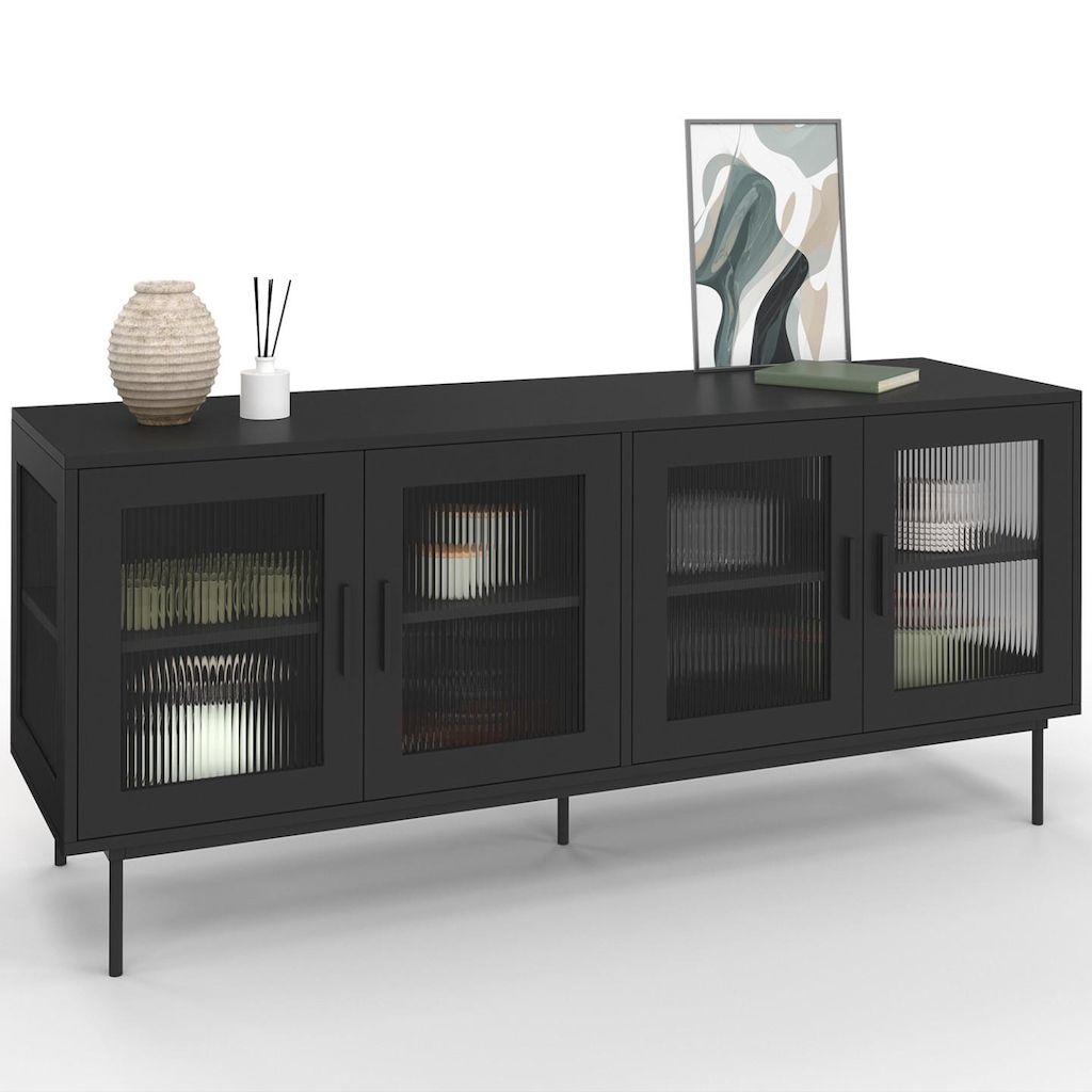 Buffet 140 cm ZINEB 4 portes vitrées façade cannelée noir