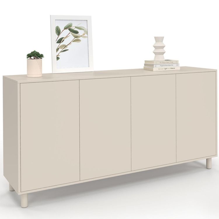 Le buffet BERTILLE 160 cm apporte une touche élégante et contemporaine à votre intérieur grâce à son coloris beige doux et son design épuré.Conçu en bois, il allie sobriété et fonctionnalité pour s'intégrer facilement dans un salon, une salle à manger ou un bureau.Doté de 4 portes, ce buffet offre u