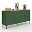 Craquez pour ce buffet alliant esthétisme et praticité ! Avec son coloris vert kaki très en vogue, son plateau effet bois chaleureux et ses pieds fins en métal noir, il conjugue style industriel et modernité.Les 2 grands placards vous offrent un bel espace de rangement pour vous permettre d'optimise