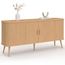 Ce buffet ROMIE 2 portes effet lattes style naturel et bohème est idéal pour parfaire la décoration de votre salon !Pratique et fonctionnel grâce à sa grande capacité de rangement, vous pourrez organiser vos documents, votre vaisselle ou encore vos livres.Ses 2 portes coulissantes astucieuses dissimulent 2 espaces de rangement pratiques et modulables à étagères réglables en hauteur. De plus, leur jolie façade à la finition effet lattes soignées apportera une ambiance lumineuse dans votre pièce.Avec son design simple et élégant et son long plateau de 160 cm de long, vous pourrez également l'utiliser dans une chambre, une cuisine, comme meuble de rangement ou même comme meuble TV ! Ses 5 pieds en bois de pin et sa structure en panneaux de particules vous garantissent stabilité et robustesse.Craquez pour ce buffet design ROMIE aux portes coulissantes qui deviendra la pièce maîtresse de votre salon en un clin d'œil !Dimensions du buffet ROMIE 160 cmDimensions globales : Longueur 160 cm x largeur 40 cm x Hauteur 80 cmDimensions intérieurs des placards : L. 66.5 x l. 33.5 x H. 55 cm - étagère ajustableDimensions des poignées : L. 1.5 x l. 2 x H. 10 cmHauteur pied : 22 cmMatériaux : Panneaux de particules et pieds et bois de pinColoris : BoisÀ monter soi-mêmeRetrouvez l'ensemble de notre collection moderne sur notre boutique en ligne !
