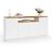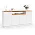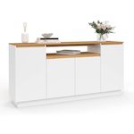 À la recherche d'un buffet fonctionnel et décoratif ? Choisissez le buffet bas 160 cm SERENA 4 portes avec niche blanc plateau effet bois à prix mini !Le look moderne de ce buffet, son design massif mais élégant et ses coloris naturels blanc et bois se marieront parfaitement avec votre décoration intérieure !Son format pratique combinant une belle longueur de 160 cm et de nombreux rangements sera parfait pour optimiser et structurer votre espace, sans encombrer la pièce. Les 2 placards latéraux et le double placard au centre sont chacun dotés d'une étagère ajustable sur 3 niveaux. Ils vous offriront l'espace nécessaire pour ranger vaisselle légère, petit électroménager ou encore livres de cuisine. Profitez également d'une niche d'une hauteur de 15 cm pour mettre en avant quelques éléments de décoration. La structure en panneaux de particules de ce buffet lui offre stabilité et robustesse.N'attendez plus et adoptez la nouvelle pièce maitresse de votre salle à manger pour un intérieur chic et ordonné !Dimensions du buffet 4 portes SERENA 160 cmDimensions globales : Longueur 160 cm x largeur 40 cm x Hauteur 80 cmDimensions de la niche : L. 80 x l. 38,5 x H. 15 cmDimensions d'une porte de placard latéral : L. 39,5 x H. 68,5 cmDimensions d'un placard latéral : L. 37 x l. 36,5 x H. 65,5 cmDimensions d'une porte du double placard : L. 39,5 x H. 52 cmDimensions de double placard : L. 80 x l. 37 x H. 48,5 cm3 étagères ajustablesMatériaux : panneaux de particules de bois (PB) Coloris : blanc et bois clairÀ monter soi-mêmeRetrouvez l'ensemble de notre collection de meubles modernes sur notre boutique en ligne !