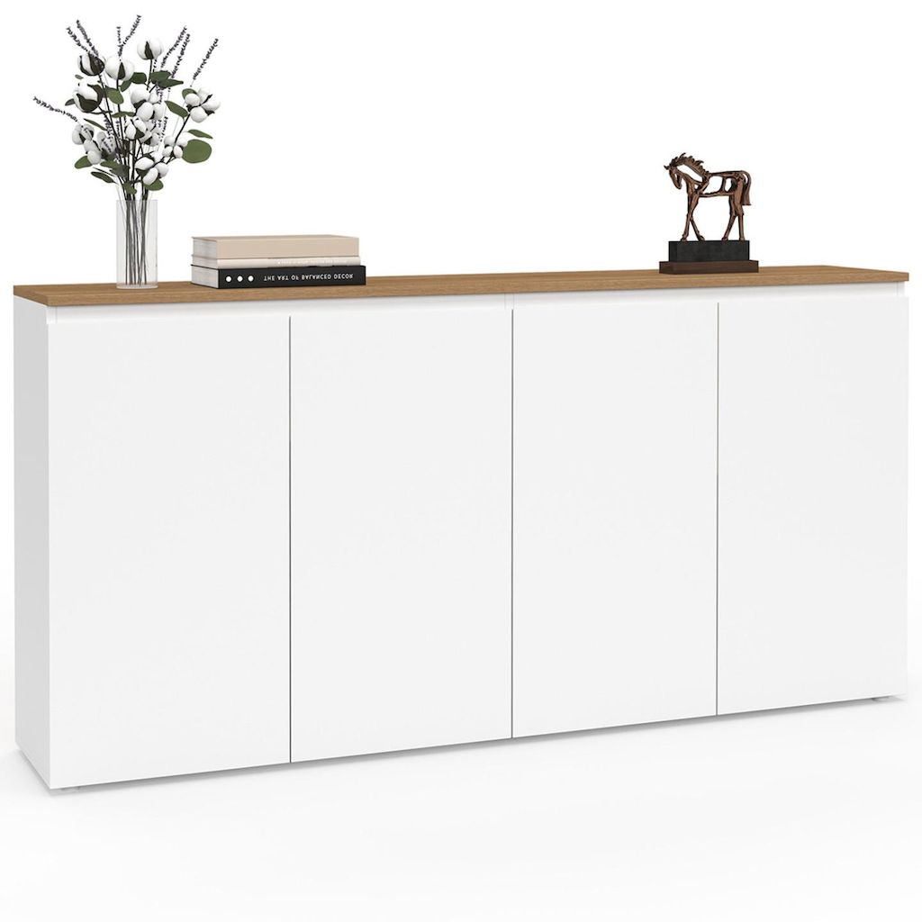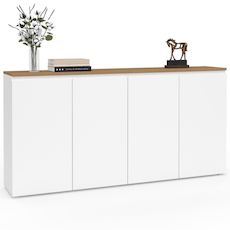 Buffet 160 cm TOBY 4 portes blanc et plateau bois