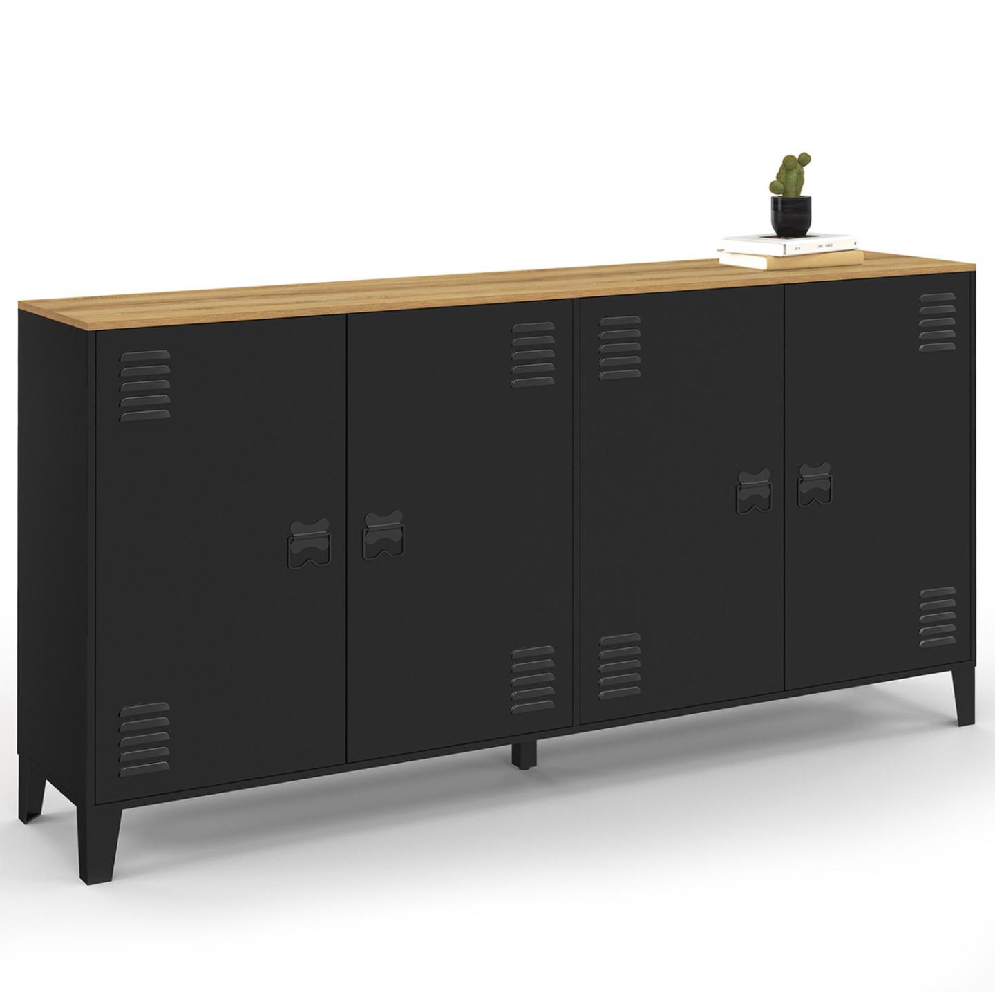 Buffet 160cm ESTER 4 portes en métal noir plateau bois design industriel