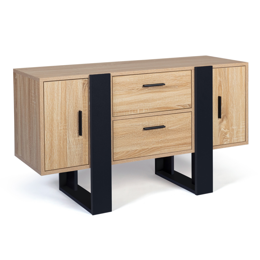 Vous recherchez un meuble à la fois tendance et pratique qui vous offre une capacité de rangement optimale ? Découvrez le buffet PHOENIX 2 portes et 2 tiroirs bois et noir qui donnera un esprit atelier à votre salle à manger !Doté de nombreux espaces de rangement, ce buffet aux dimensions compactes (105 x 40 cm) est idéal pour une pièce de vie ordonnée. Ses 2 placards et ses 2 tiroirs vous permettront de ranger vaisselle, électroménager, vases ou même livres de cuisine et autres effets personnels à l'abri des regards.Ses pieds larges reliés entre eux et sa structure à l'aspect massif assurent solidité et stabilité à ce buffet ultra design.L'association des pieds en bois noir et de la structure en bois lui donne un effet bi-matière et apporte modernité et look tendance dans votre intérieur. Ses coloris naturels se fondront à merveille avec votre décoration intérieure pour une ambiance chaleureuse et moderne à la fois !Profitez de ce buffet industriel bois et noir à prix irrésistible !Dimensions du buffet PHOENIX 2 portes 2 tiroirsDimensions globales : Longueur 105 cm x largeur 40 cm x Hauteur 60 cmDimensions de chaque tiroir : L. 40 x l. 40 x H. 17,5 cmDimensions de chaque placard : L. 19,5 x l. 40 x Hauteur 37 cmDimensions de chaque pied : l. 9 x H. 20 cmÉpaisseur des plateaux en particules de bois : 1,5 cmÀ monter soi-mêmeDe nombreux autres meubles sont disponibles dans la collection PHOENIX, comme les tables à manger :Retrouvez l'ensemble de nos buffets ainsi que notre collection de meubles modernes sur notre boutique en ligne !