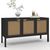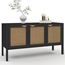 Buffet bas 110 cm EDHEN 3 portes bois noir et cannage