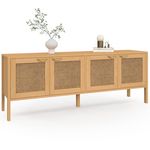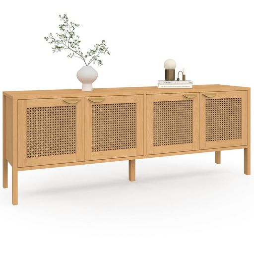 Buffet bas 160 cm EDHEN 4 portes bois et cannage