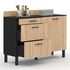 Buffet bas casserolier de cuisine 120 cm CINA plan de travail H.83 cm 1 porte + 3 tiroirs noir et façon hêtre