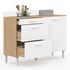Buffet bas de cuisine 120 cm casserolier CINA plan de travail H.83 cm 1 porte + 3 tiroirs façon hêtre et blanc