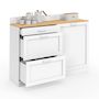 Buffet bas de cuisine 120 cm casserolier VITO plan de travail H.83 cm 1 porte + 3 tiroirs blanc et plateau façon hêtre