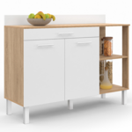 Choisissez le buffet de cuisine CINA au design tendance et moderne pour aménager votre intérieur. Sa structure façon hêtre et ses portes blanches s'accorderont parfaitement dans votre pièce de vie. Ce meuble est doté d'un large plan de travail de 120 x 40 cm, idéal pour cuisiner de bons petits plats