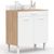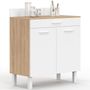 Buffet bas de cuisine 80 cm CINA plan de travail H.83 cm 2 portes + tiroir façon hêtre et blanc