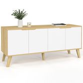 Buffet bas scandinave 140 cm FINN 4 portes blanc et bois façon hêtre