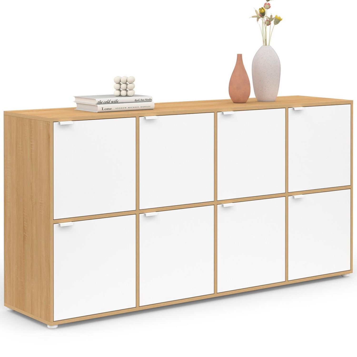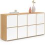 Buffet casier 139 cm CASSIE 8 portes blanc et bois