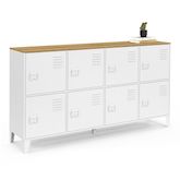Buffet casier 139 cm ESTER 8 portes en métal blanc plateau bois design industriel