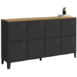 Buffet casier 139 cm ESTER 8 portes en métal noir plateau bois design industriel