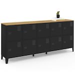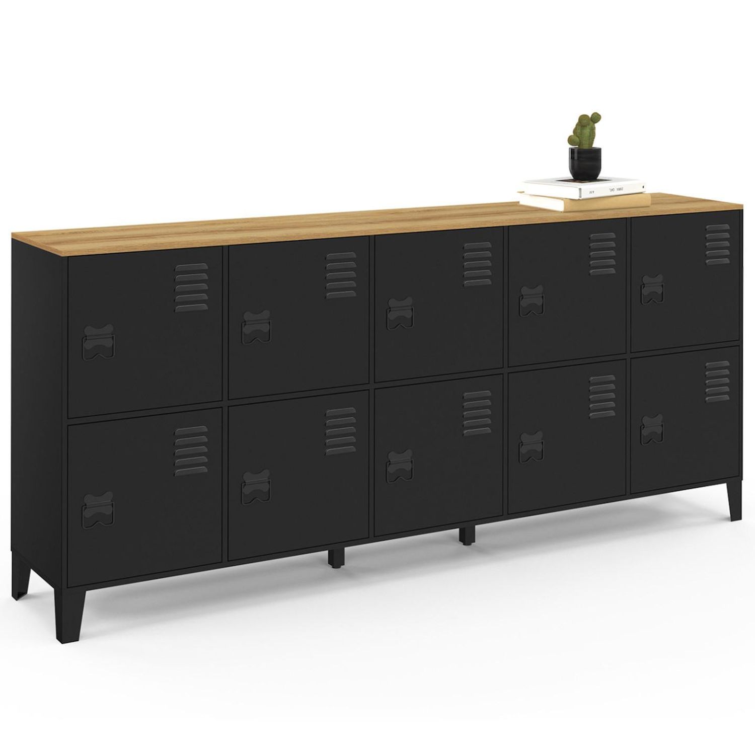 Buffet casier 180 cm ESTER 10 portes en métal noir plateau bois design industriel