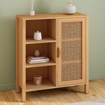 Buffet d'appoint 3 étagères et placard 70 cm EDHEN bois et cannage
