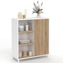 Buffet d'appoint 70 cm EASY montage facile sans outils 3 étagères et 1 porte coulissante réversible blanc et bois