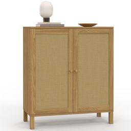 Découvrez le buffet d'appoint 2 portes HANAE et ses façades de portes effet rotin naturel ! Il mettra en valeur vos accessoires tout en gardant votre pièce bien ordonnée !Design et fonctionnel, ce meuble de rangement s'adaptera facilement aux différentes pièces de votre maison quel que soit votre in
