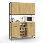 Buffet de cuisine 120 CM DETROIT 5 portes + tiroirs + range-bouteilles design industriel