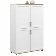 Buffet haut H. 125 cm VITO 4 portes blanc et bois