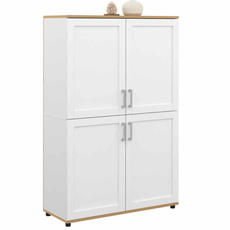 Pour une pièce de vie rangée et savamment décorée, choisissez le buffet de salon haut VITO au coloris blanc et plateau façon bois !Le look tendance style campagne chic de cette armoire de cuisine, son design massif mais élégant et ses couleurs sobres et naturelles se marieront parfaitement avec votre décoration intérieure !Son format pratique combinant des dimensions compactes et de nombreux rangements sera parfait pour optimiser et structurer votre espace, sans encombrer la pièce.Les 2 placards avec double porte offrent un accès facile à vos affaires tout en préservant un aspect soigné. Idéal pour le salon, la salle à manger ou même un bureau, ce buffet avec ses 4 espaces de rangements, dotés chacun d'une étagère ajustable, vous offriront l'espace nécessaire pour ranger vaisselle légère, petit électroménager ou encore livres de cuisine.Son design contemporain intemporel s'intègrera parfaitement dans tous les styles d'intérieur, du altique au moderne. Le coloris blanc mélangé aux planches de bois clair à chaque extrémité de la petite armoire en font un meuble épuré et chic. N'hésitez plus et optez pour ce vaisselier VITO 4 portes blanc et bois pour un rangement optimisé et esthétique à prix mini ! Dimensions du buffet haut VITO blanc et bois Dimensions globales : Longueur 80 cm x largeur 34 cm x Hauteur 125 cm Hauteur des pieds : 2,5 cmDimensions intérieures d'un placard : L. 77 x l. 32,5 x H. 59,5 cm 1 étagère ajustable en haut et 1 étagère ajustable en bas Longueur d'une poignée : 11 cmMatériaux : panneaux de particules de bois (PB) Coloris : blanc et boisÀ monter soi-mêmeCette buffet haut VITO existe également en coloris noir et bois. Pour une pièce de vie harmonieuse, craquez pour le meuble TV ou le buffet bas de la même collection par exemple !