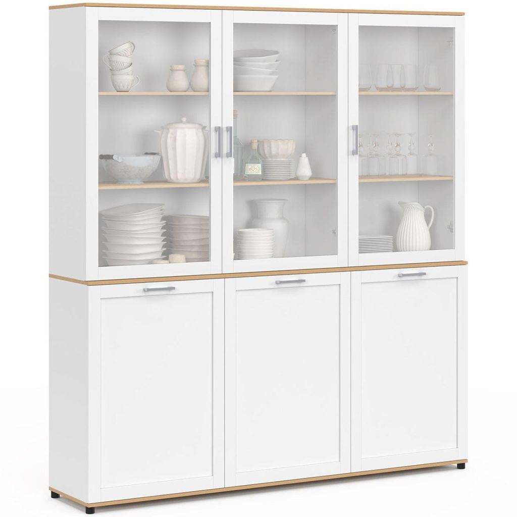 Buffet vaisselier 160 cm VITO meuble de cuisine 6 portes blanc et bois