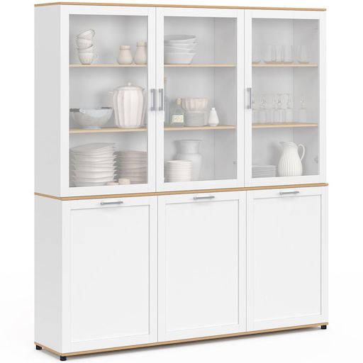 Ajoutez une touche d'élégance à votre intérieur grâce à notre armoire vitrine 6 portes VITO blanche et bois. Ce meuble allie modernité et tradition, offrant un espace de rangement fonctionnel tout en mettant en valeur vos objets décoratifs ! Les 6 placards de ce vaisselier blanc et bois offrent un a
