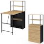 Bureau bibliothèque pliable RAY plateau rabattable bois façon hêtre et noir