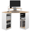 Bureau d'angle HARRY blanc et façon hêtre gain de place bureau informatique avec rangements