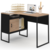 Bureau d'angle ROB noir et façon hêtre niche de rangement et porte design industriel