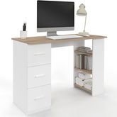 Bureau droit MAE 3 tiroirs avec étagères de rangement blanc et bois