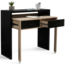 Vous êtes à la recherche d'un bureau fonctionnel et design ? Optez sans attendre pour le bureau MAX au coloris bois noir et façon hêtre !Idéal pour les petits espaces, ce bureau multifonctions vous offre la possibilité d'une multitude d'utilisations ! Utilisez les rangements pour organiser vos affaires personnelles (papiers, fournitures) en toute discrétion et travailler sur votre ordinateur confortablement installé sur les deux niveaux du bureau MAX. Multifonctions, ce meuble extensible peut autant vous servir de bureau que de coiffeuse ! Ces deux tiroirs coulissants vous permettent de ranger l'ensemble de vos produits de beauté. Grâce à son design moderne et fonctionnel, le bureau MAX peut être adapté à tous types de décorations et s'intègre dans toutes les pièces : salon, chambre d'enfant, chambre d'amis, entrée, palier.Que vous optiez pour l'option bureau, coiffeuse ou console, le meuble MAX offrira une touche de modernité à votre intérieur. Conçu en panneau de particules, ce meuble vous offre un rendu esthétique et robuste ! Profitez sans plus attendre de ce meuble multifonctions avec sa partie rétractable ultra pratique, idéal pour les petits espaces ! Utilisez-le en bureau, coiffeuse ou console, son rendu moderne sublimera votre espace.Dimensions du bureau extensible MAX bois noir et façon hêtreDimensions globales : Longueur 98.5 x largeur 36 x Hauteur 88 cmDimensions déplié (bureau ouvert) : L.98.5 x l.64 x H.88 cmDimensions des tiroirs : L.36 x l.27 x H.7.5 cmMatière : panneau de particules (PB) 15mmColoris : noir et façon hêtreÀ monter soi-mêmeDécouvrez aussi l'ensemble de nos bureaux sur notre boutique !
