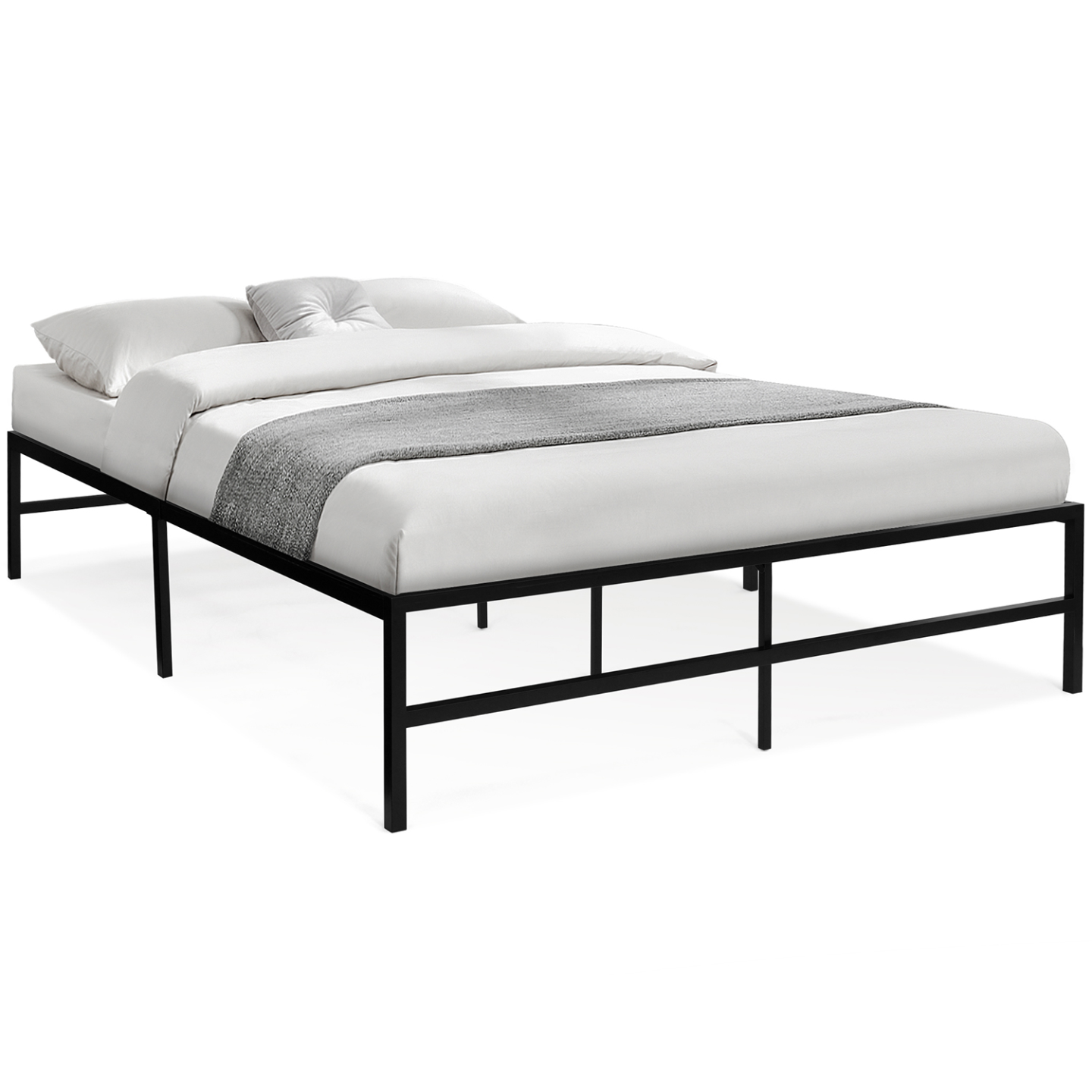 Cadre de lit double TULSA 140x190 cm sommier plateforme en métal noir 35 cm